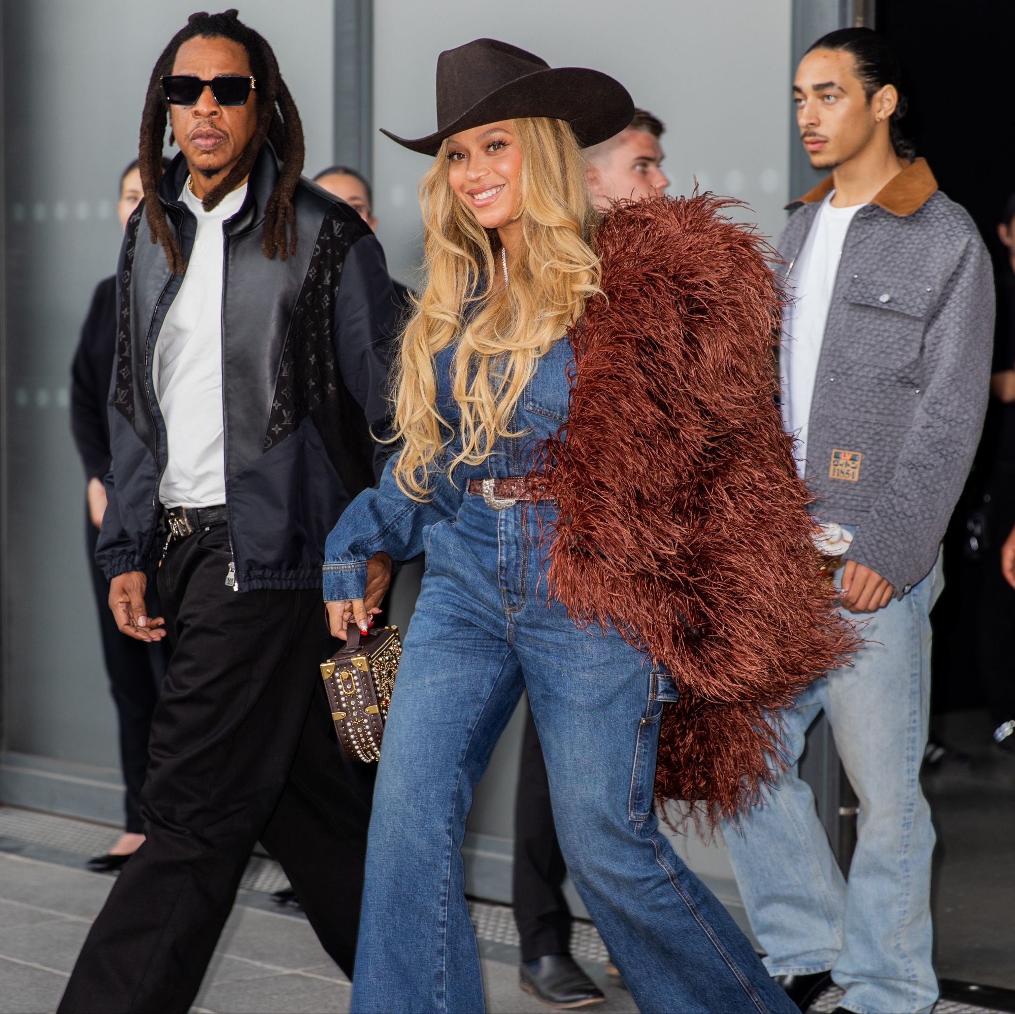 Beyoncé + Jay-Z at Pharrell Williams Louis Vuitton Spring-Summer 2026 Show via Vaughn Lowery’s 360 MAGAZINE.