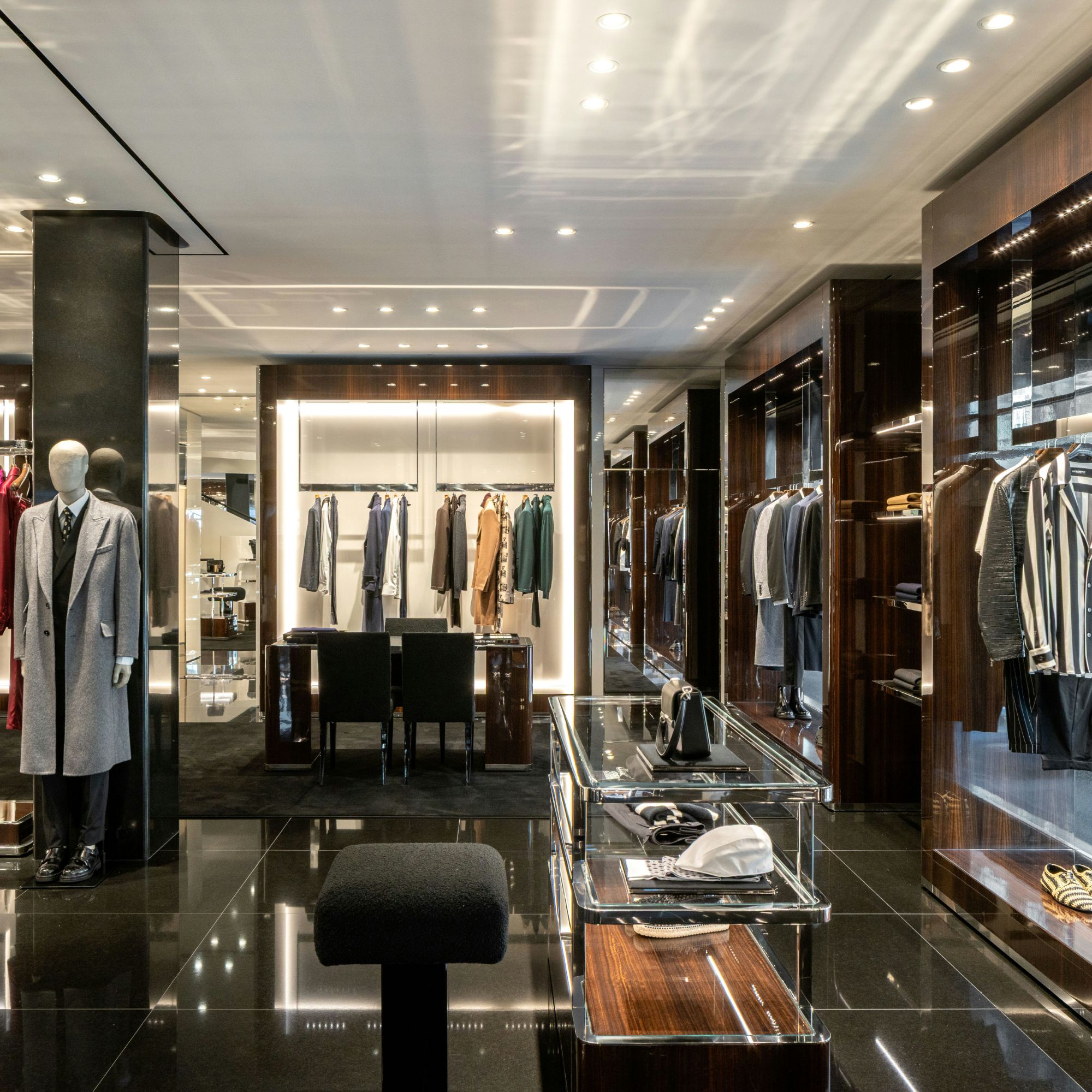 The boutique houses Men’s and Women’s Ready to Wear and Accessories, Fine Jewelry and Watches, and a selection of pieces from the Casa Collection.