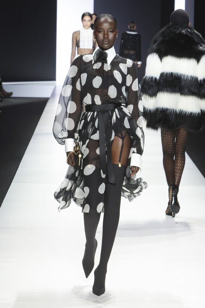 Tailoring, shapes, proportions, black, white, and impeccable fabrics are the key elements of the collection, Woman.