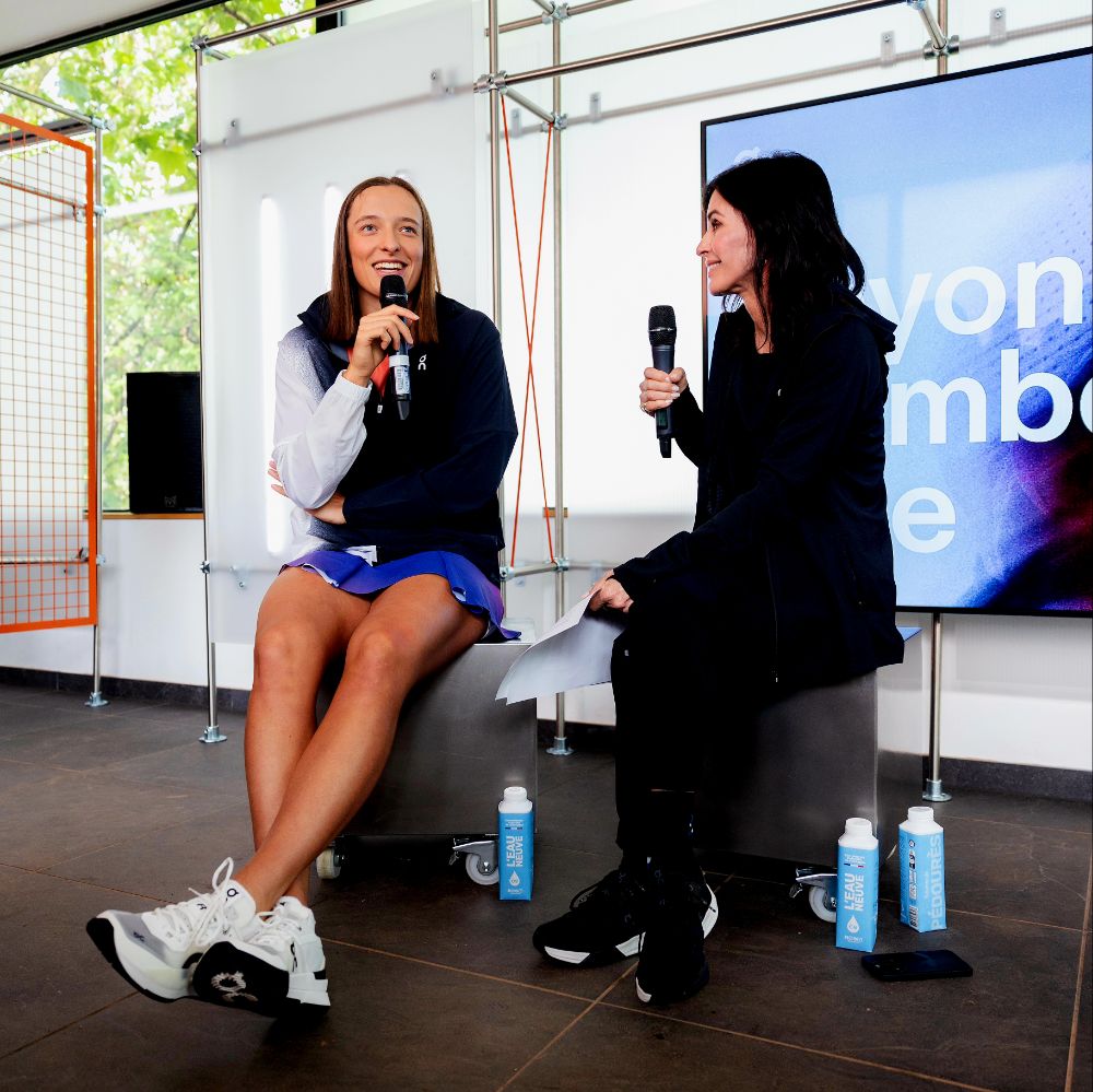 On helped turn that idea into a reality in Paris. After presenting the short film in an exclusive preview for present tennis enthusiasts, community members, and the media, Iga and Courteney chatted about a multitude of topics during a Q&A session. Afterward, and to the delight of more than 50 guests, the iconic pairing took to the court for a short match before Świątek spent some time playing with community members as well.