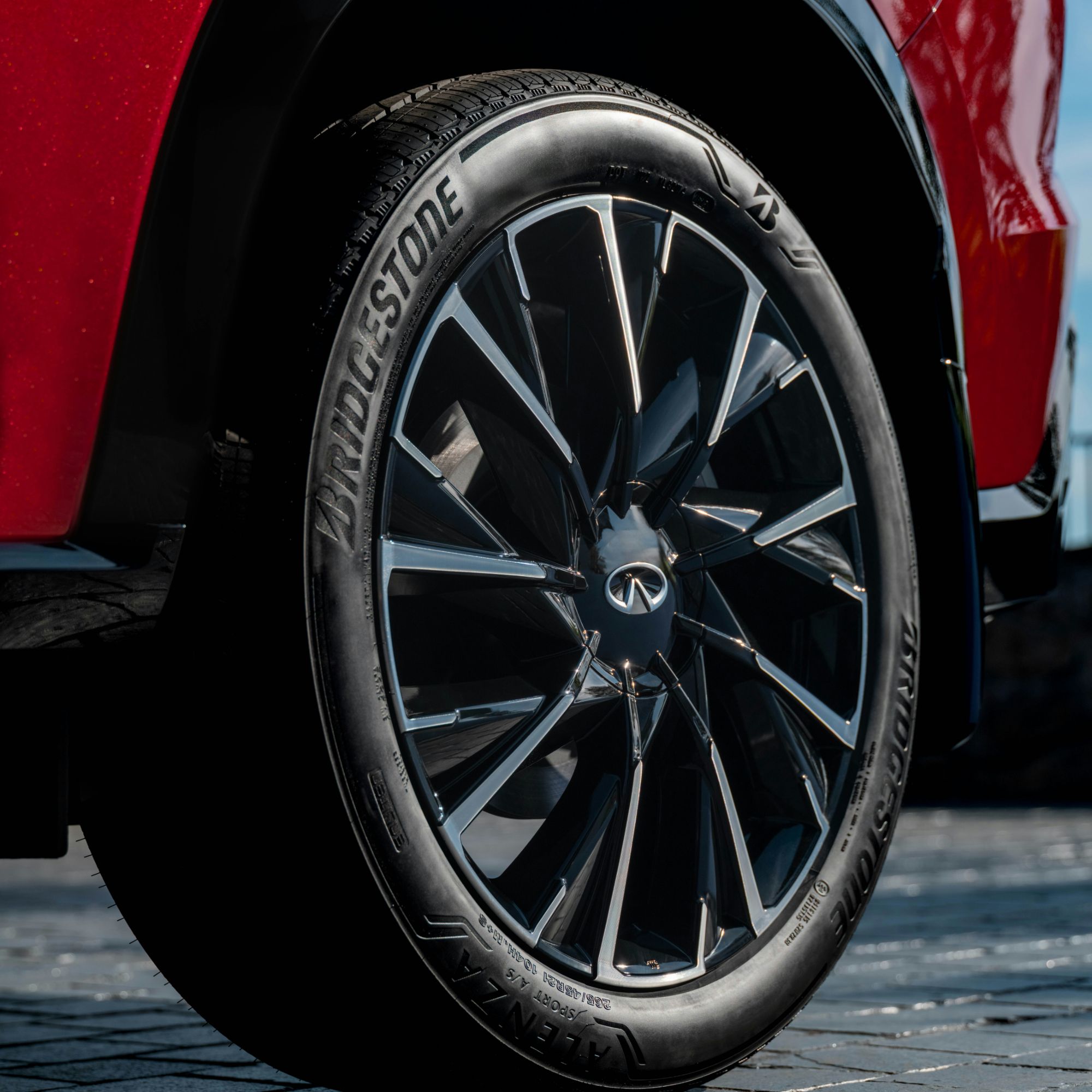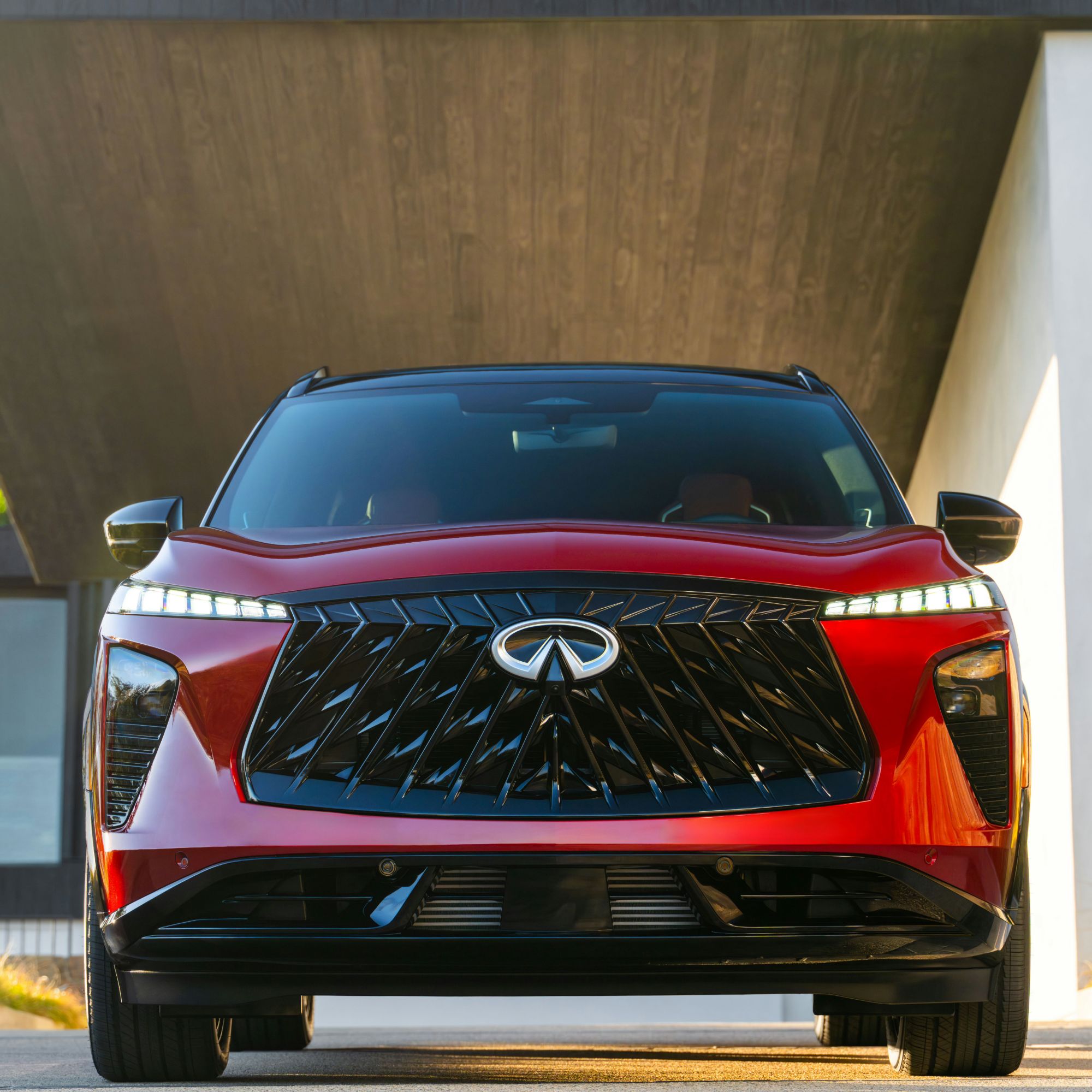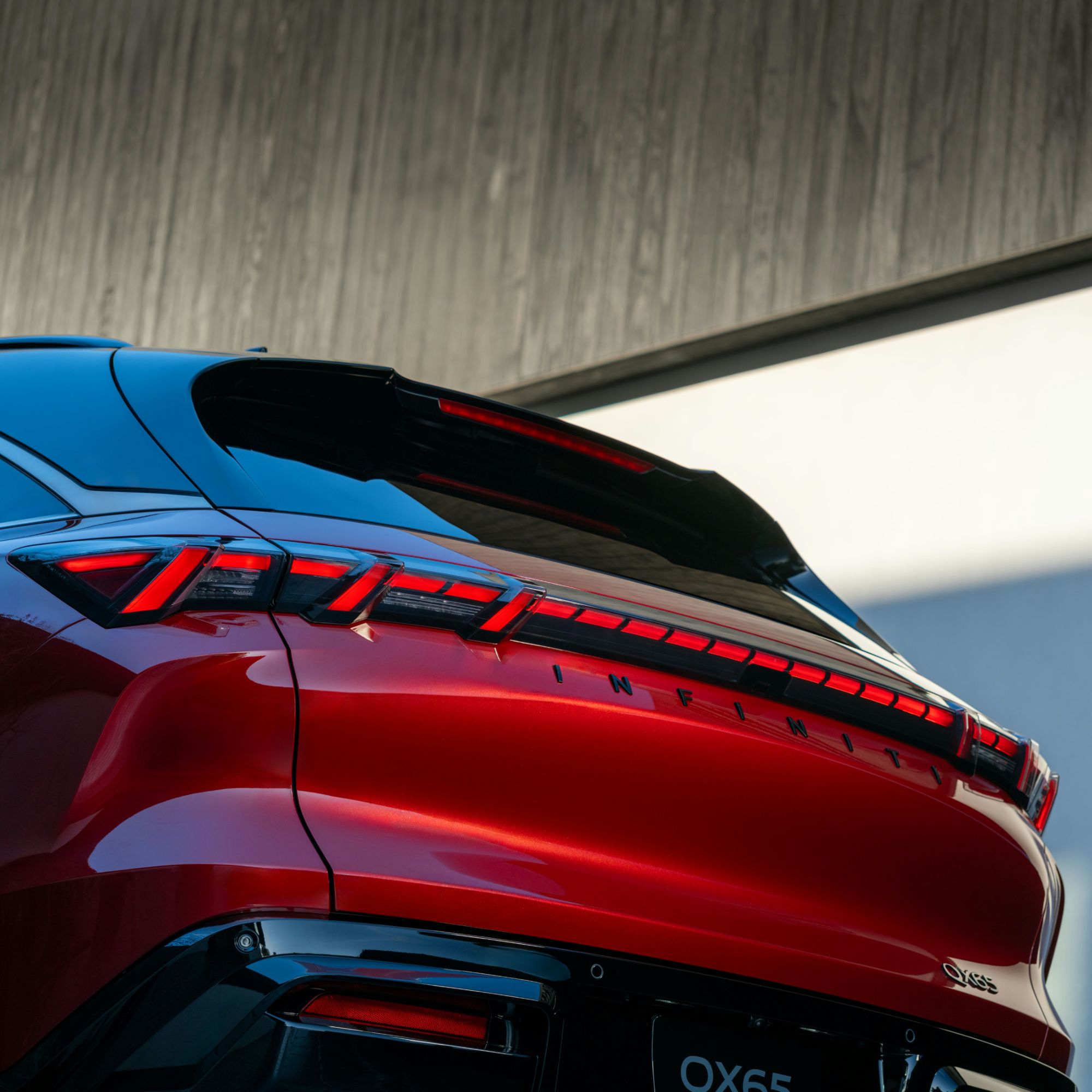 QX65’s new Sunfire Red paint features genuine gold-coated glass flecks, requiring a three-layer application to achieve its one-of-a-kind appearance – delivering a finish that communicates movement and emotional energy even at rest.