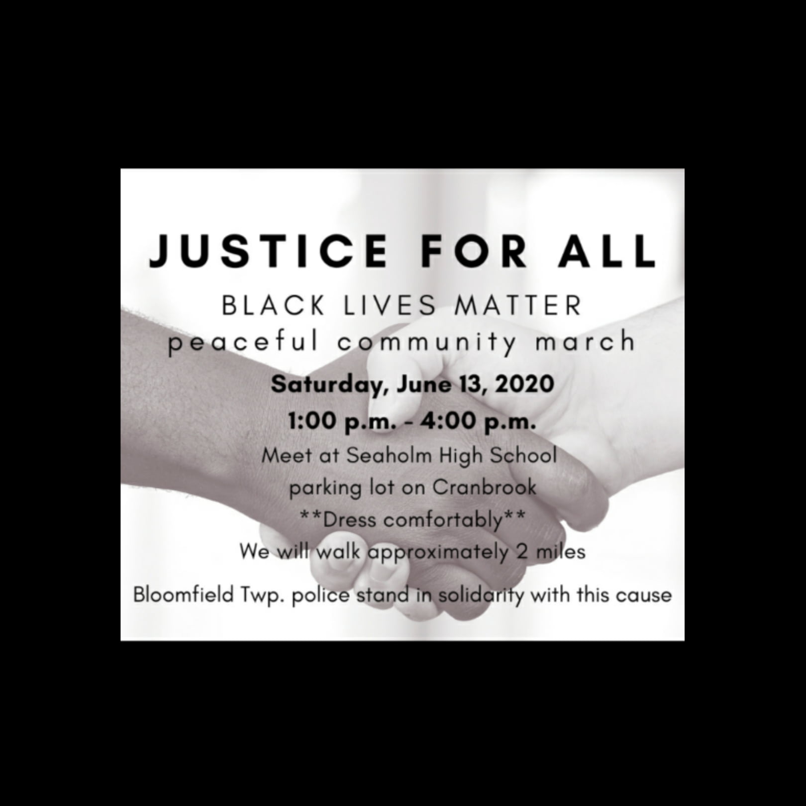 This non-violent demonstration, not dissimilar to a tranquil pilgrimage, will take place at 1:00pm with the march beginning at Seaholm High School. The peace walk is a superb opportunity to galvanize the Bloomfield Township community around the message of justice. The event organizers’ cooperation with the township’s police is emblematic of a community eager to foster a positive relationship between citizens and law enforcement. “The march is meant for bringing people together,” commented the community organizer responsible for the walk, “I feel we can control our own narrative as a community to repair the hurt and brokenness that has been going on,” she continued.