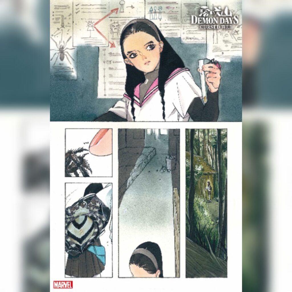 Peach Momoko’s Demon Days: Cursed Web illustration by Peach Momoko from Anthony Blackwood at Marvel Entertainment for use by 360 Magazine Previous Next