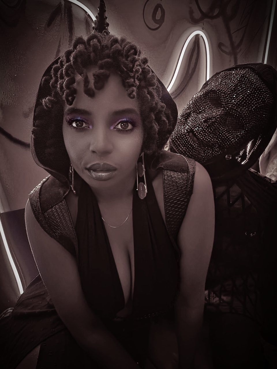 Rapper/Singer LaJune Grant photographed by Vaughn Lowery for 360 MAGAZINE at Bodega in The Bronx for Halloween. Previous Next